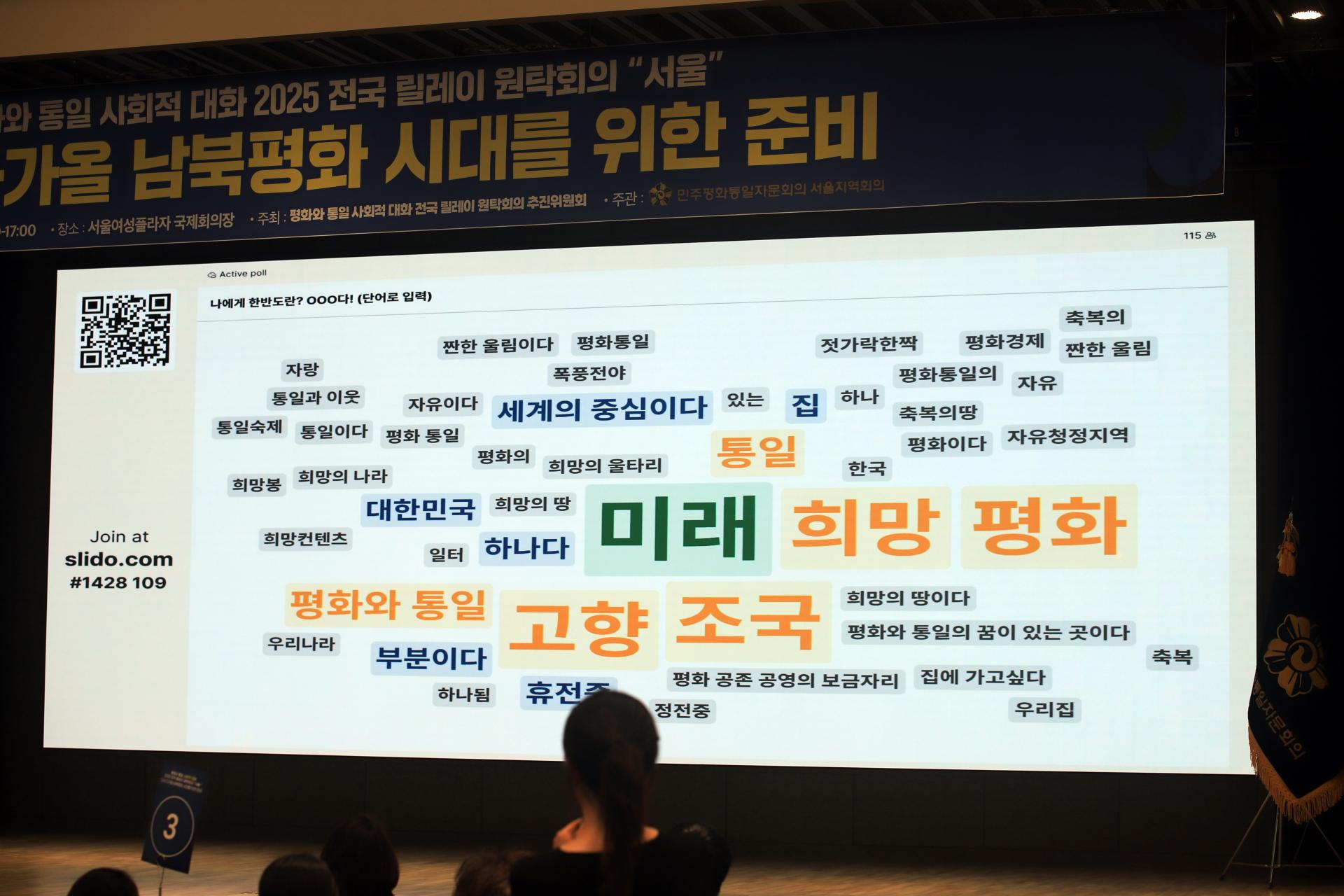 7월 31일 서울여성플라자 국제회의장을 꽉 채운 200여명의 서울시민들은, ① 2025년 평화통일에 대한 걸림돌 ② 평화통일을 위한 최대한의 실천과제 ③ 최소한의 합의에 대해 열띤 대화의 시간을 가졌습니다.